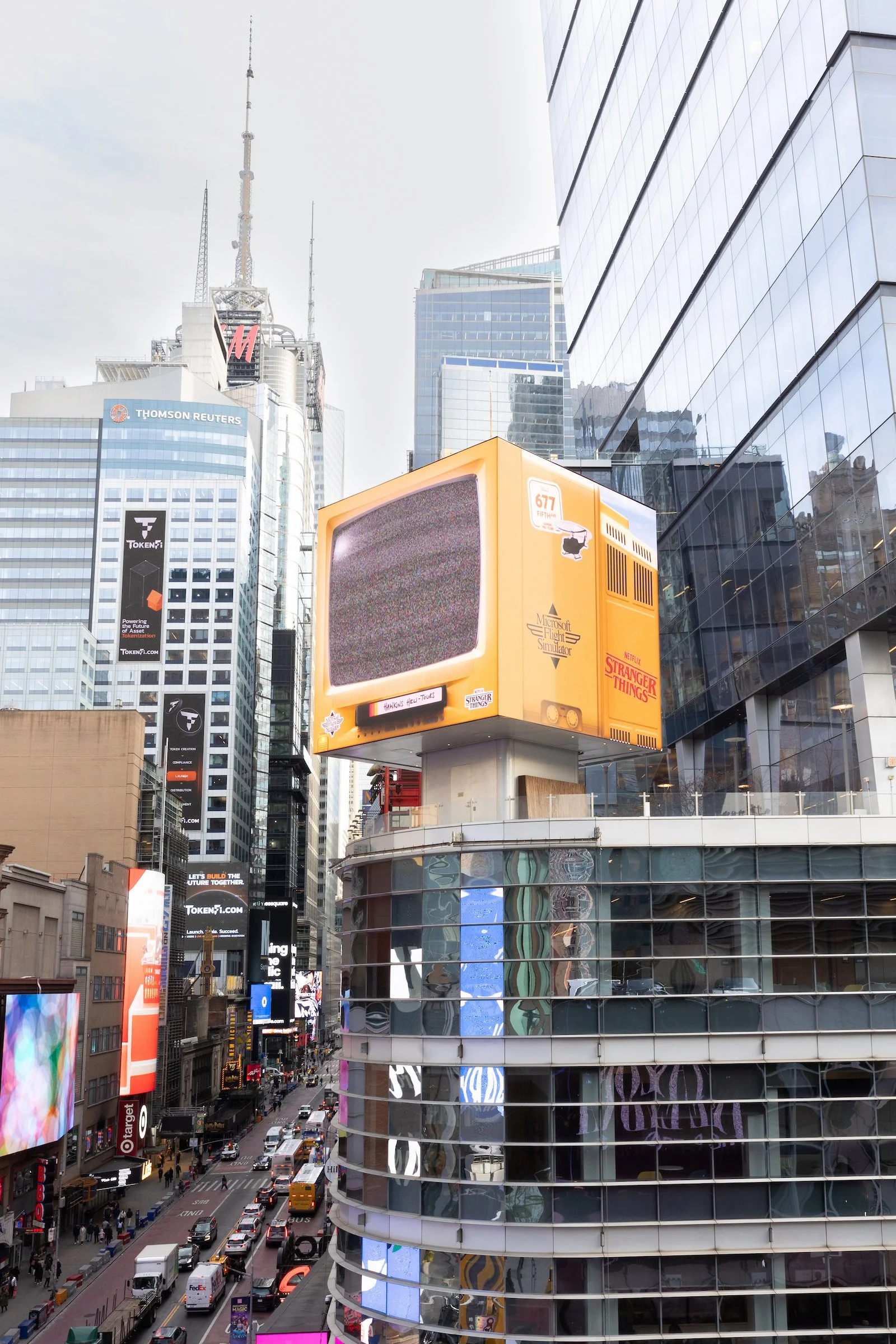Meanwhile a few blocks away, we hijacked the Microsoft Cube in Times Square for a week. Transforming three DOOH screens into a 3D activation that felt airlifted straight out of Hawkins.