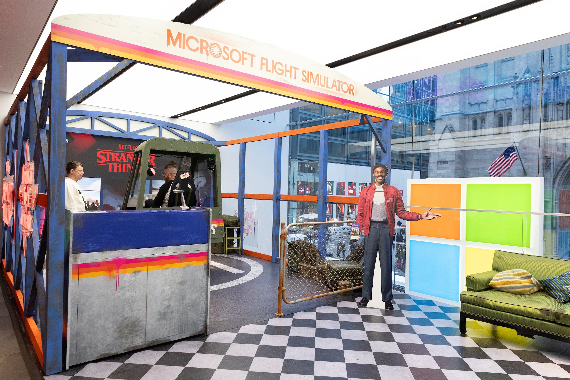 Back on the ground, we turned the Microsoft Experience Center in New York into a living, breathing Hawkins Heli-Tours travel agency. From hidden, coded Easter eggs to a fully immersive 4D UH-1 flight simulator that visitors could climb into and play, fans were dropped straight into the world of the game.